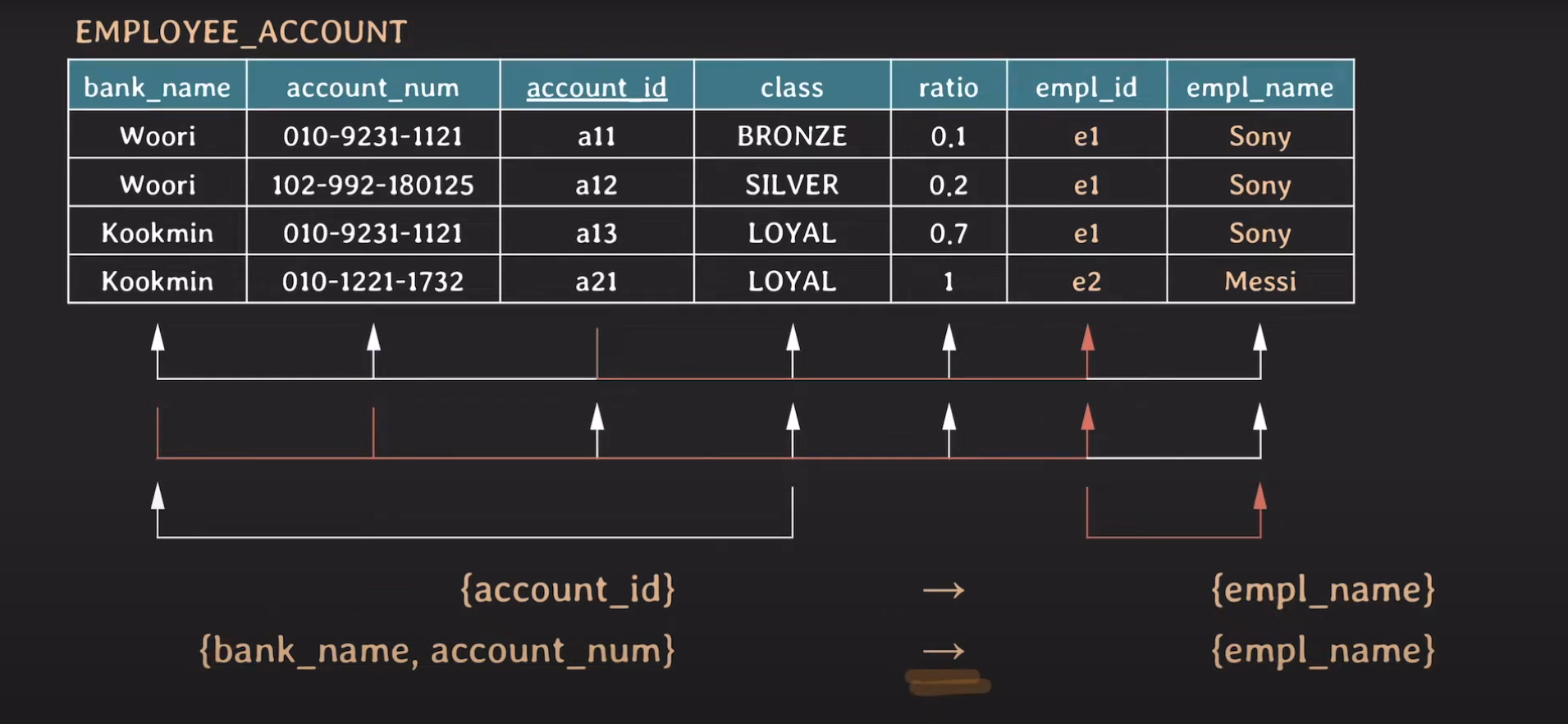ex) 학생 고유ID는 학생 이름, 학생 나이, 학생 학과를 결정짓는다