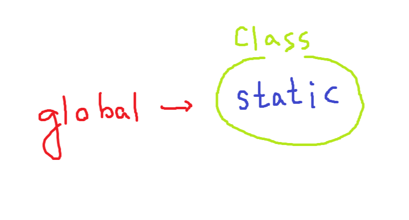따라서 C++에서는 "특정 클래스의 전역변수임" 을 표시하기 위해 static이란 키워드를 만들었다